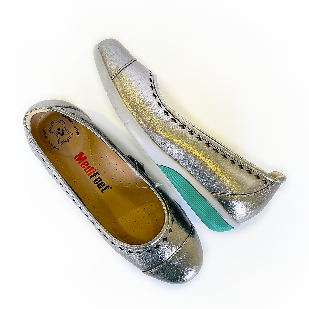 Designed with Energy Steps Contourlite technology, enjoy a slight bounce in every step. The shiny metallic finish of these flats make it versatile to be dressed up or down, making them a suitable choice for casual and formal occasions. A trendy choice for adding some sparkle to your look!