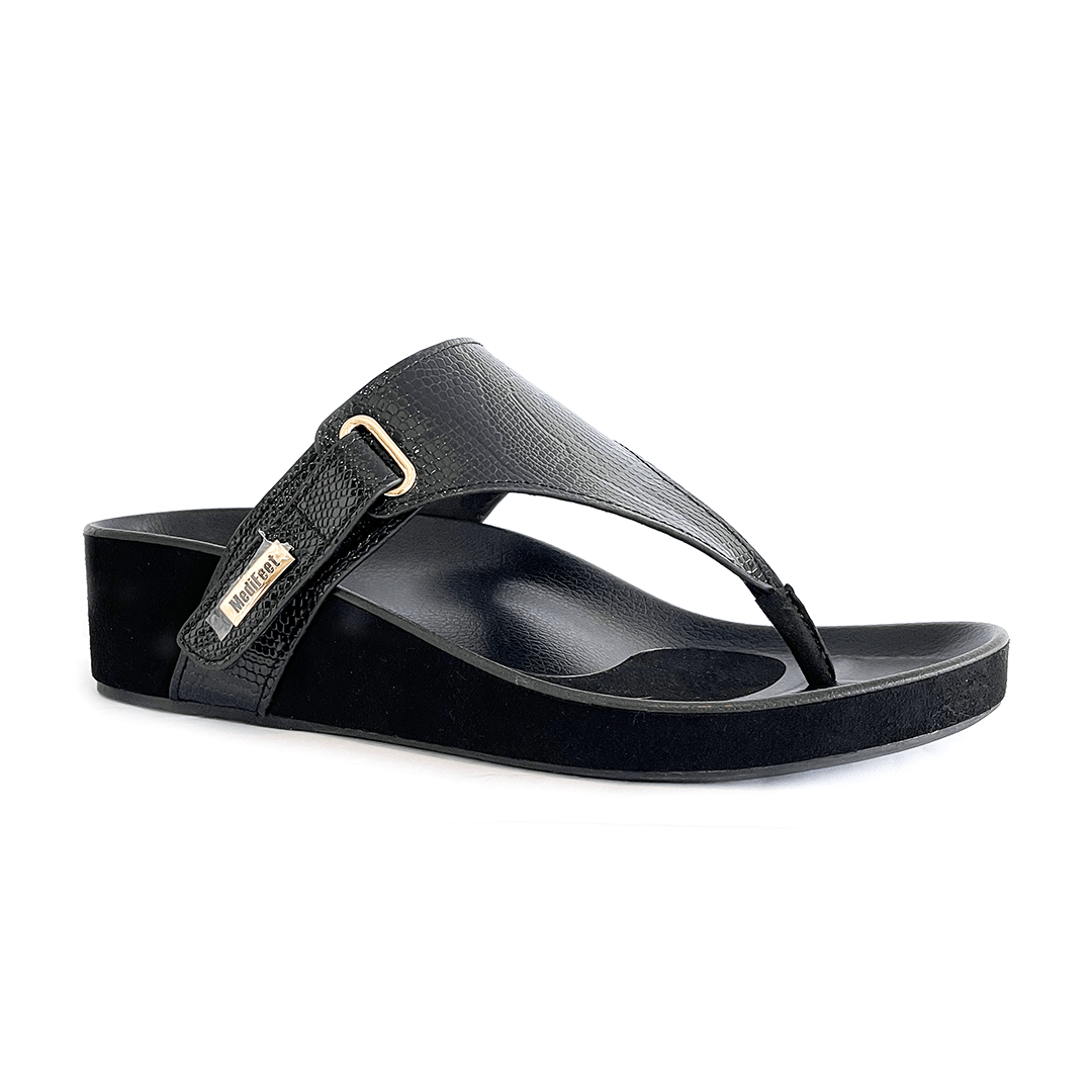 Designed with Spinal Guard Technology, these stylish sandals have ergonomic features to provide support and comfort to the spine and feet. The arch support and contoured footbed promotes proper alignment and reduces stress on the spine.